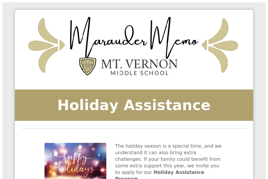 Holiday Assistance The holiday season is a special time, and we understand it can also bring extra challenges. If your family could benefit from some e. . .